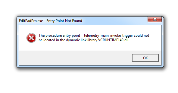 The procedure entry point __telemetry_main_invoke_trigger could not be located in the dynamic link library VCRUNTIME140.dll.